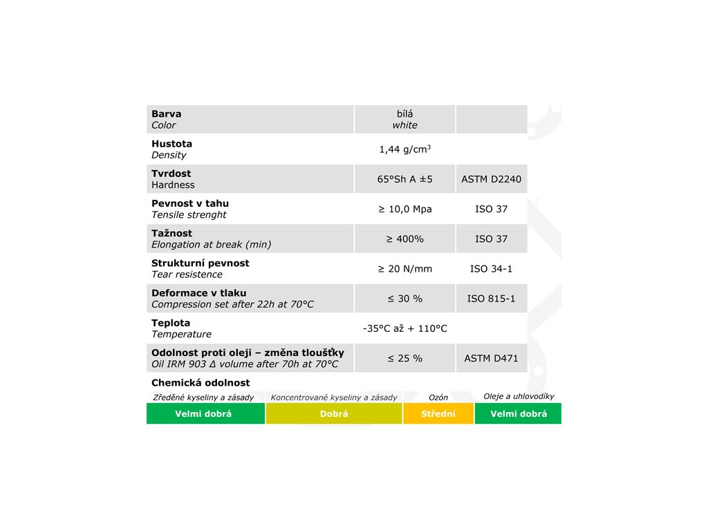 - velmi dobrá odolnost olejům, rostlinným a živočišných tukům