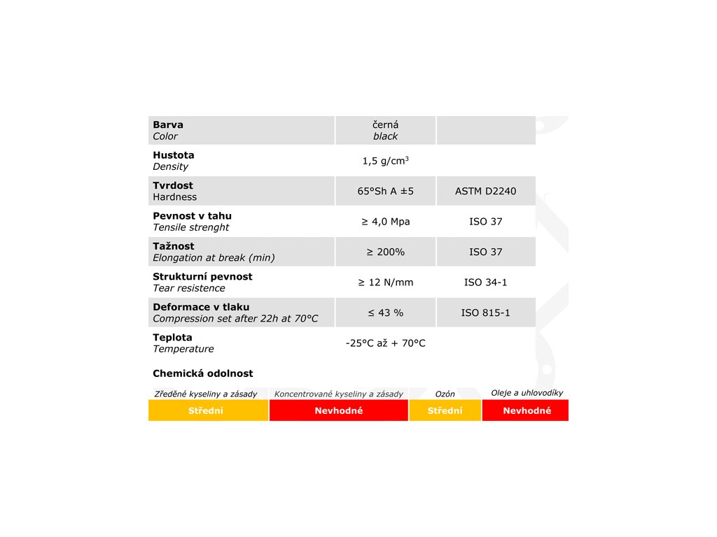 - minimální olejivzdornost a odolnost ozonu