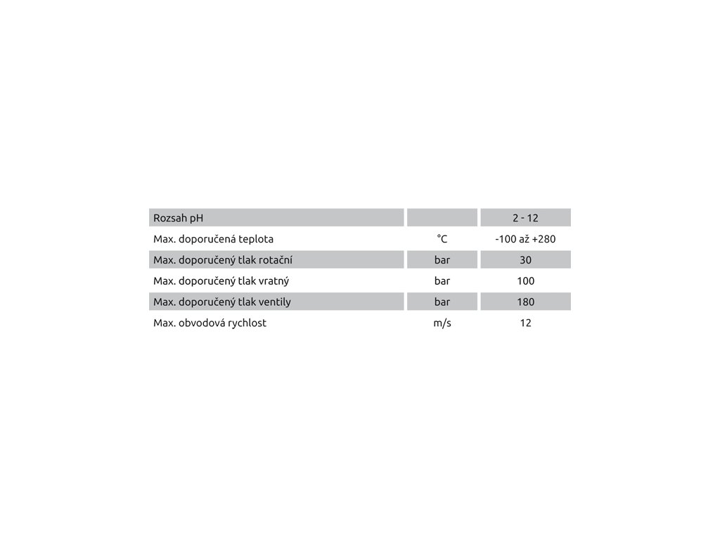 - pro většinu chemikálií, rozpouštědla, oleje, páru, abrazivní media, mírné kyseliny a zásady