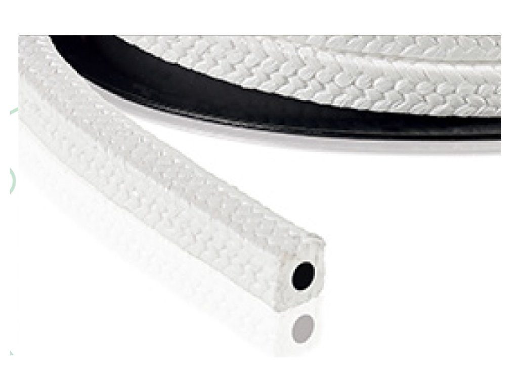 - měkké pletené těsnění z čistého PTFE vlákna s pružným jádrem (podle požadavku zákazníka – hadička z materiálu guma, silikon, viton)