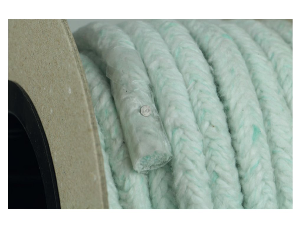 - specielní česaná vysokoteplotní skleněná příze, která je zesílená nerezovým drátem, jádro ucpávky obsahuje vysokoteplotní materiál Super Wool